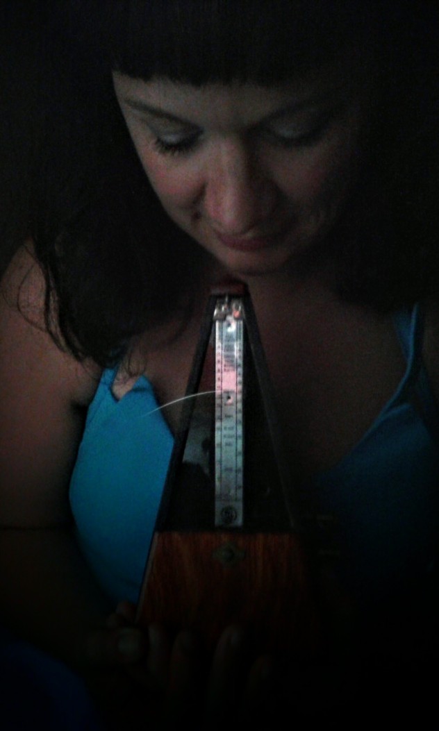 Her statement with regard to the nature of her art work entitled, Mementronome, is concise and informative. I recommend it to anyone interested in the Demarco Archive as a ‘gesamtkunstwerk’. It is fitting that her contribution is in the Demarco Gallery at Summerhall devoted to an exhibition entitled Paul Neagu and Friends. The image on the Festival poster advertising Mementronome as part of the Demarco European Art Foundation’s Summerhall exhibition programme is arresting and unforgettable. The metronome strapped on Aletia’s head and her use of the cardboard box should bring back memories of how Paul Neagu used the reality of a metronome in his ‘Going Tornado’ performance in Scotland in The Demarco Gallery Forresthill Poorhouse and on Inchcolm Island. The Demarco Archive, for the most part, exists in cardboard boxes so this image expresses the quintessential nature of the Demarco Archive as it is made manifest at Summerhall.